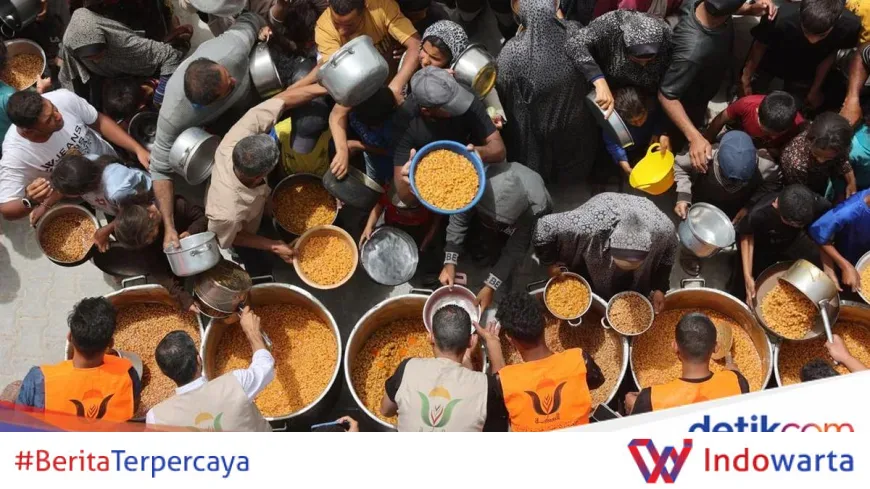 Gambar yang beredar menunjukkan warga di sejumlah wilayah terdampak, seperti di Gaza, mengantre panjang untuk mendapatkan makanan hangat di dapur umum, mencerminkan kondisi darurat pangan yang melanda.