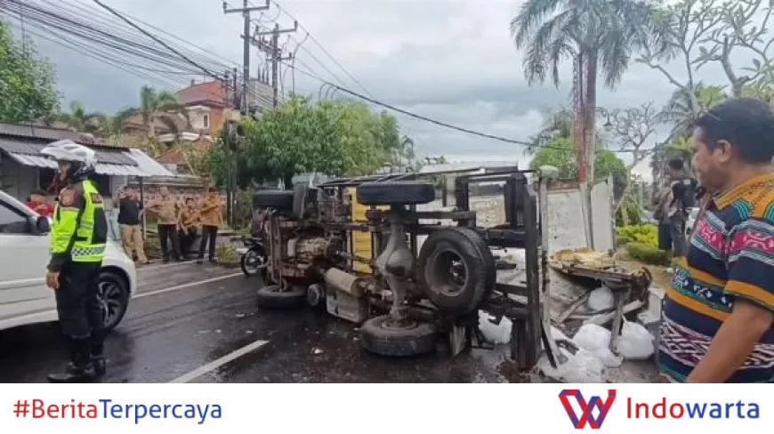Kecelakaan Truk Terguling di Gianyar, Muatan Es Berserakan di Jalan Raya