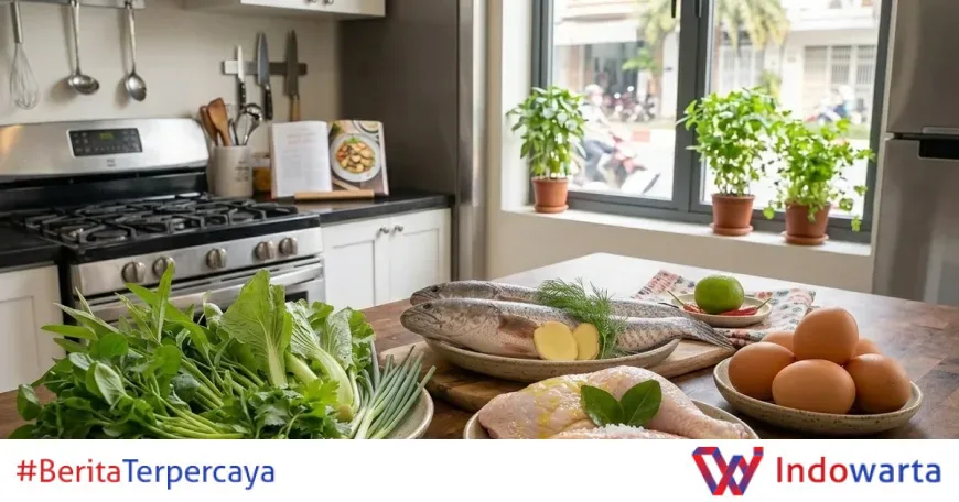 - Makan makanan seimbang: Kombinasikan sayuran hijau, protein tanpa lemak seperti ayam, ikan, telur, kacang-kacangan, dan tahu, serta biji-bijian utuh seperti quinoa dan beras merah.