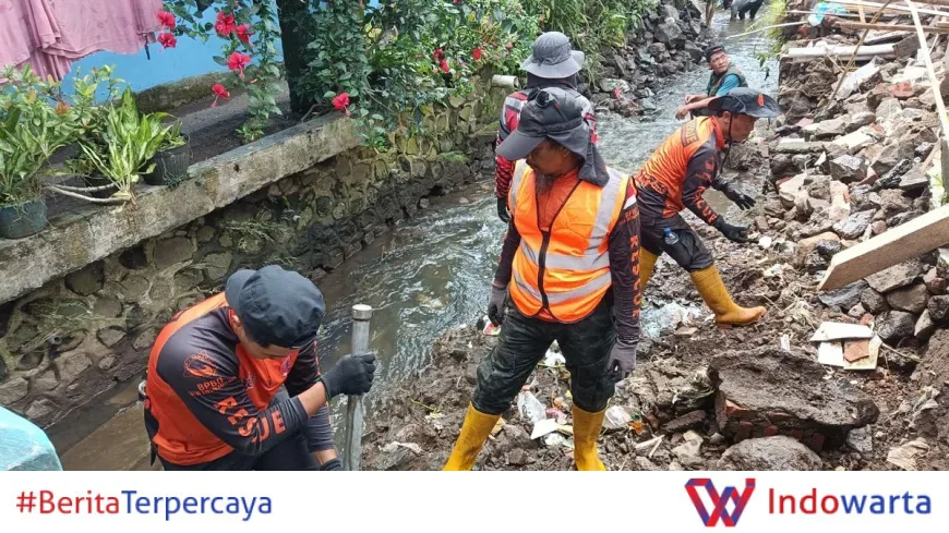 Longsor Tembok Penahan Tanah di Cipedes Tasikmalaya Tutupi Aliran Sungai, BPBD Turun Tangan