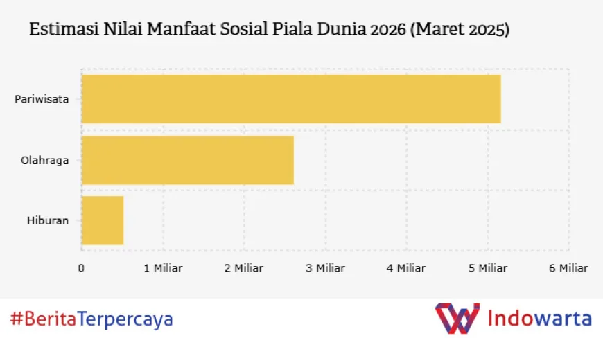 Piala Dunia 2026 yang akan berlangsung pada 11 Juni hingga 19 Juli 2026 di Kanada, Meksiko, dan Amerika Serikat (AS) diperkirakan memberikan manfaat sosial yang besar, mencapai nilai sekitar US$8,28 miliar. Estimasi ini tercantum dalam laporan bersama antara FIFA dan World Trade Organization (WTO) berjudul FIFA World Cup 2026 Socioeconomic Impact Analysis.