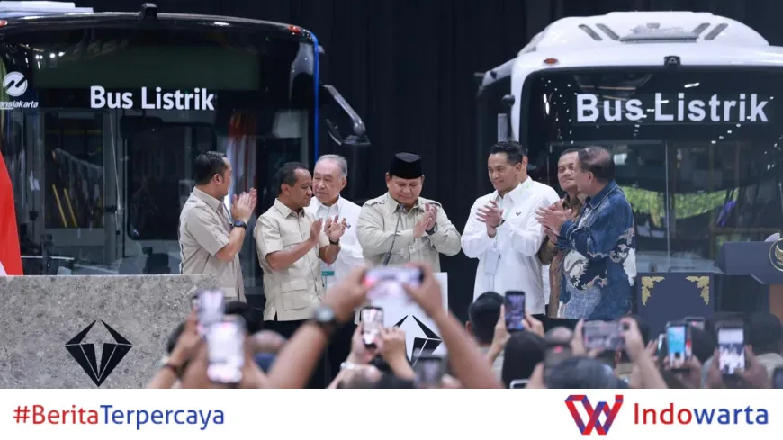"Jadi hari ini, saya sangat gembira, saya sangat bangga, kita sekarang di Indonesia punya kemampuan untuk produksi bus dan truk listrik. Ini sangat-sangat penting," ujar Prabowo.