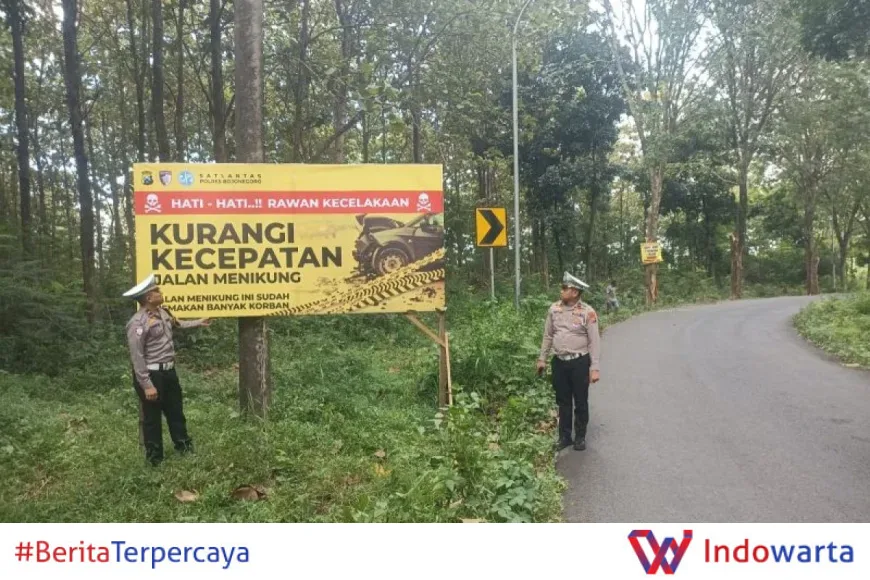 Polres Bojonegoro Pasang Imbauan di Titik Rawan Antisipasi Kecelakaan Lalu Lintas