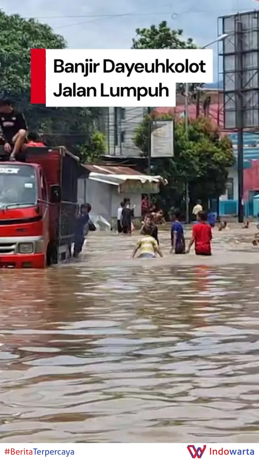 Banjir kembali melanda kawasan Dayeuhkolot, Kabupaten Bandung, Jawa Barat, yang mengakibatkan akses jalan utama lumpuh total. Genangan air yang cukup tinggi membuat kendaraan sulit melintas dan menggangu aktivitas warga setempat.