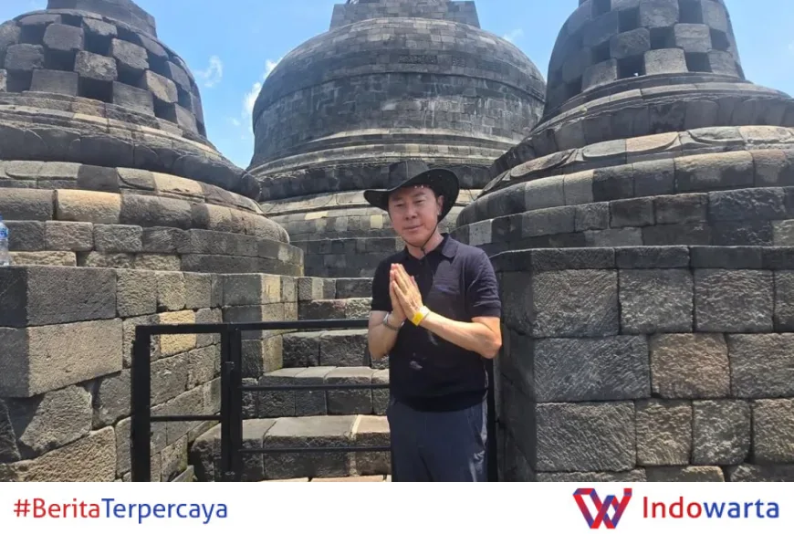 "Pertama kali berkunjung ke Yogyakarta. Kunjungan ke Candi Borobudur. Sungguh menakjubkan," tulis Shin Tae-yong di akun Instagram pribadinya @shintaeyong7777.
