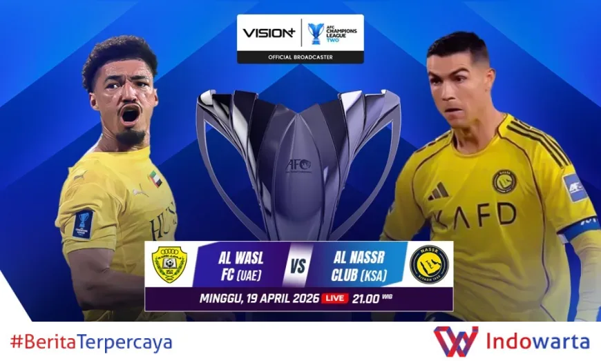 Perempatfinal AFC Champions League 2 2025-2026 akan menghadirkan laga seru antara Al Wasl FC melawan Al Nassr. Pertandingan leg pertama ini dijadwalkan berlangsung pada Minggu, 19 April 2026 pukul 21.00 WIB dan dapat disaksikan secara langsung melalui channel SPORTSTARS 4 di Vision+. Bagi penggemar sepak bola yang ingin menyaksikan duel ini, link live streaming dapat diakses dengan klik di sini.