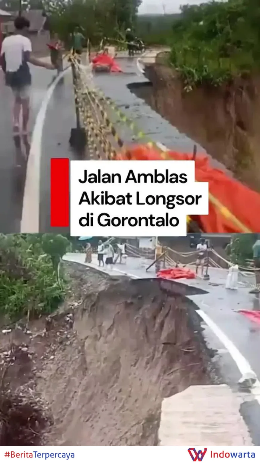 Jalan utama di Kecamatan Pulubala, Kabupaten Gorontalo, Provinsi Gorontalo, amblas akibat longsor yang terjadi pada Sabtu pagi, 18 April 2024. Kejadian ini menyebabkan lalu lintas di lokasi terhambat secara signifikan karena jalan tersebut merupakan akses vital bagi kendaraan menuju dan dari Kabupaten Gorontalo.