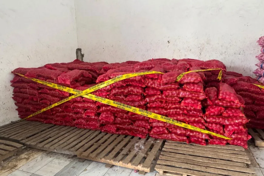 Di gudang tersebut, petugas menemukan sekitar 1.500 karung bawang bombai impor dengan berat masing-masing sekitar 9 kilogram. Harga jual bawang impor ini mencapai Rp18 ribu per kilogram.