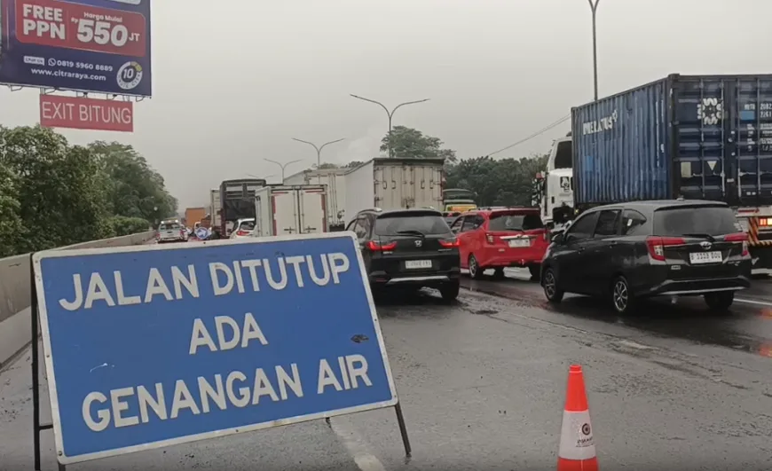 Banjir terjadi tepatnya pada ruas tol sebelum pintu keluar Tol Bitung, Tangerang, dengan genangan air membentang hampir satu kilometer. Kondisi ini membuat sejumlah kendaraan terpaksa memperlambat laju atau mencari jalur alternatif untuk menghindari bagian yang tergenang.