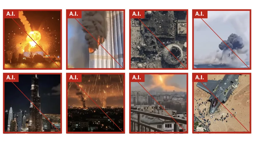 The New York Times mengidentifikasi lebih dari 110 gambar dan video unik hasil A.I. dalam dua minggu terakhir yang berkaitan dengan perang di Timur Tengah. Konten palsu tersebut mencakup semua aspek pertempuran, mulai dari penggambaran palsu orang Israel yang ketakutan di tengah ledakan di Tel Aviv, warga Iran yang berpura-pura berduka atas korban, hingga kapal militer Amerika Serikat yang dikabarkan diserang dengan misil dan torpedo.