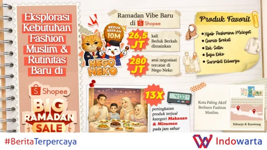 Menjelang Idulfitri, Shopee Big Ramadan Sale 2026 kembali sukses mencuri perhatian masyarakat Indonesia dengan menghadirkan tren belanja yang tidak hanya penuh promo menarik tetapi juga pengalaman interaktif dan inovatif selama bulan Ramadan. Kampanye yang telah berlangsung lebih dari satu bulan ini menjadi bukti bagaimana Ramadan kini bertransformasi menjadi momen yang lebih berwarna dan bermakna, tidak hanya sekadar berburu kebutuhan pokok tetapi juga ekspresi gaya hidup modern dan hiburan digital.