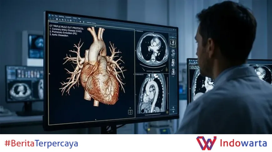 Untuk pasien dengan nyeri dada akut, CT Triple Rule-Out dapat mengevaluasi tiga penyebab utama nyeri dada berbahaya sekaligus: penyakit arteri koroner, emboli paru, dan diseksi aorta.