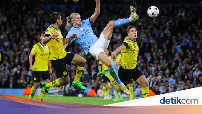 Erling Haaland Manchester City menang atas Borussia Dortmund. Aksi tendangan kungfunya merobek gawang Die Borussen, yang notabenenya bekas timnya.