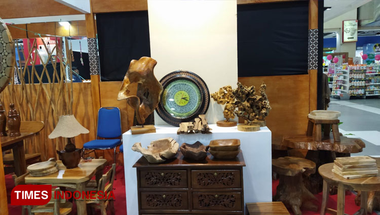 Sejumlah hasil karya kerajinan kayu jati asli Ngawi dipamerkan di salah satu pusat perbelajaan terbesar di Malang, Malang Town Square (Matos). Mulai produk kursi, meja, a ...