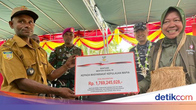 Mensos Serahkan Bantuan ke Warga Pulau Mapia Papua: Solar Cell-Ayam Petelur