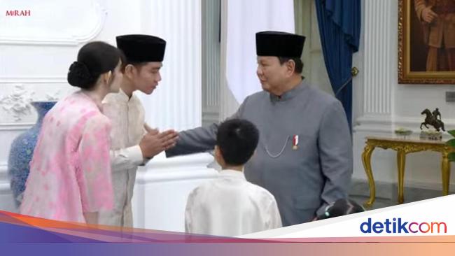 Presiden Prabowo halalbihalal dengan Wapres Gibran beserta keluarganya di Istana Negara. Anak-anak Gibran, La Lembah dan Jan Ethes sempat salim dengan Prabowo.