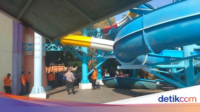 Perosotan kolam renang Kenjeran Water Park di kawasan Kenpark Surabaya ambrol. Penyebab perosotan ambrol diduga karena ini.