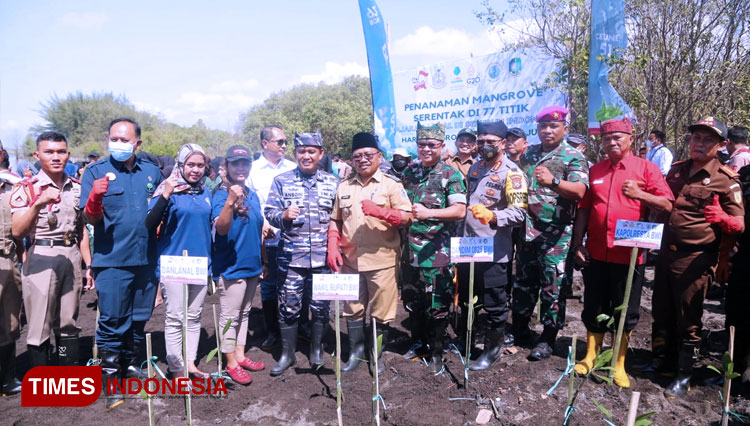 Hari ini, 5.000 bibit mangrove ditanam di Pantai Cemara, Kecamatan Kota Banyuwangi. ...