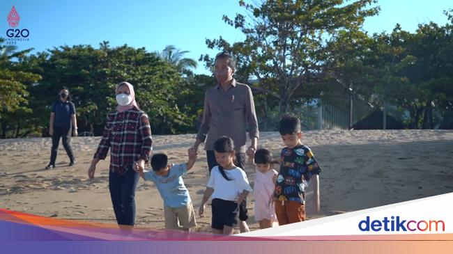 Presiden Joko Widodo (Jokowi) beserta keluarga dan cucunya menyambangi pantai di sekitaran Nusa Dua, Kabupaten Badung, Bali.
