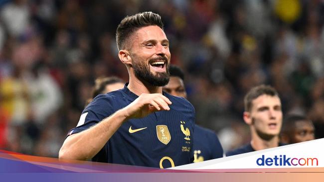 Olivier Giroud menyamai rekor Thierry Henry usai Prancis menggulung Australia 4-1 di Piala Dunia 2022. Striker 36 tahun itu menjadi topscorer Les Bleus.