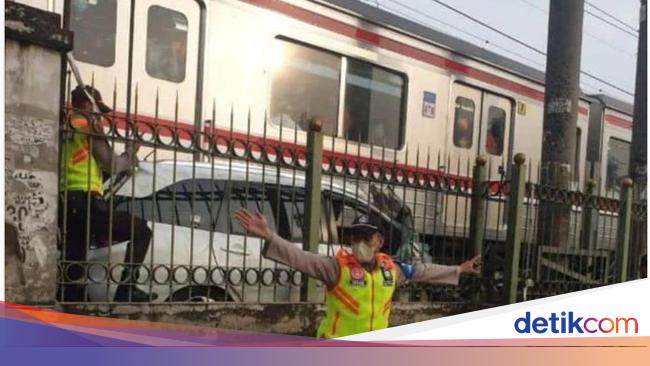 Tertabrak KRL di Perlintasan Citayam Depok, Mobil Terjepit-Rusak Parah